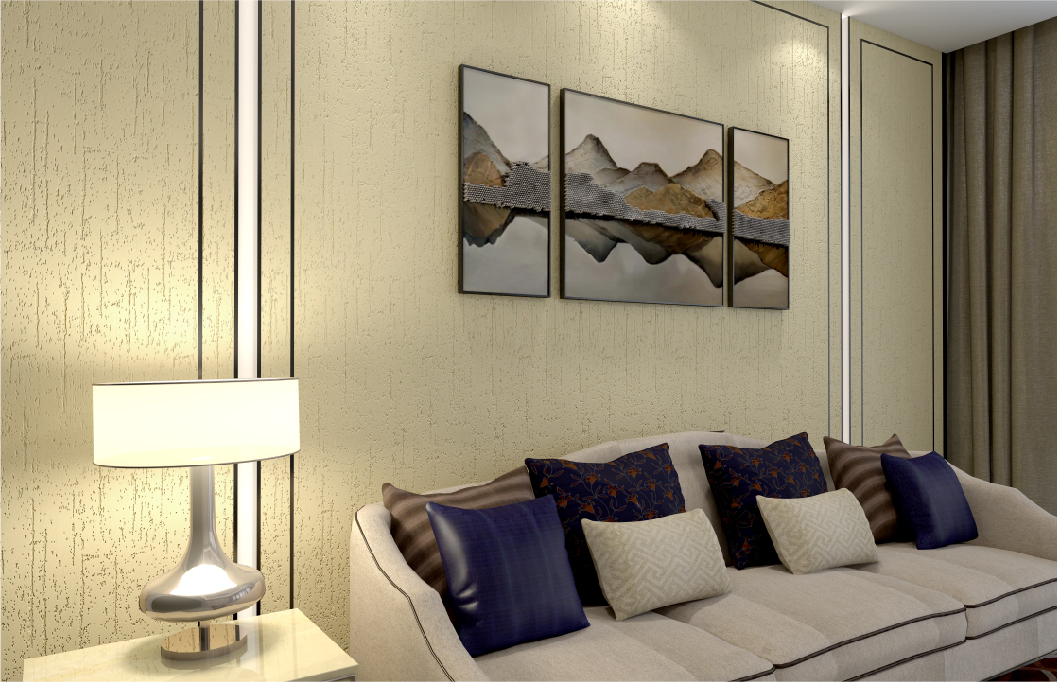 氧宜多硅藻泥肌理系列——拟丝:拟丝主要呈现方式是丝状,因为丝状深度较浅,所以呈现效果主要是点缀效果;既不同于单调的大白墙,也不类似于复杂的肌理效果,丝状线条虚实相间。