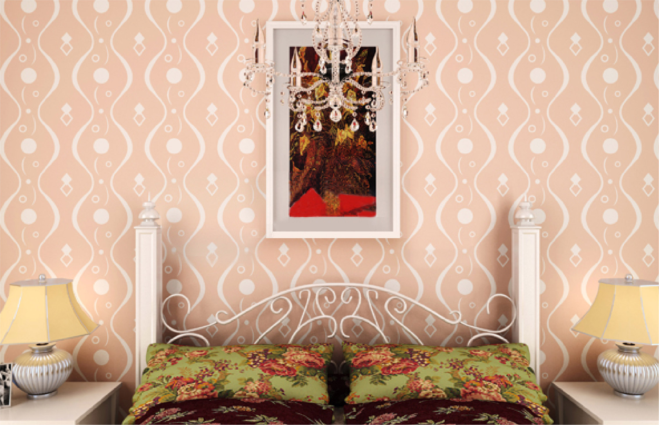 氧宜多硅藻泥白炭黑丝印系列-丽人梳妆:丽人梳妆,长发及腰。线条圆润绵亘、蜿蜒、连绵不绝,自曲线始、由曲线终,连贯且优美,给人以美的享受,适宜局部背景墙装修及全房装修。